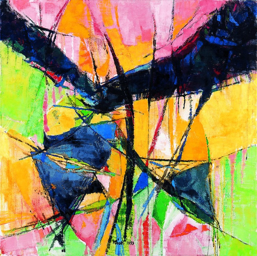 Siamo negli anni in cui il linguaggio si volge senza più mezzi termini, in maniera dichiarata, verso un tipo di astrazione lirica e delicata. In particolare ci troviamo di fronte a quel periodo, l’ultimo, nel quale le linee e i segni incominciano a muoversi (diventano «tremolanti»: effetto dato dall’impiego di tecnica acquarellata o chinata?) creando un effetto di maggior trasparenza e «vulnerabilità» dei campi e delle «figure», quasi la superficie della tela si volgesse a diventare un cielo fantastico di aquiloni in volo.