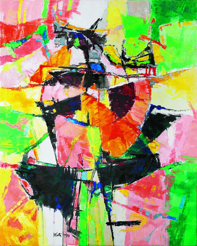 C’è qualcosa di criptico e per certi versi misterioso in questo lavoro come in quelli coevi, soprattutto per quanto riguarda gli Stones. L’impressione è che sulla consueta tavola cromatica, ulteriormente alleggerita e resa più delicatamente solare, galleggino o si incidano/si imprimano forme e segni che richiamano i grafismi di Garelli (delle opere su carta). Ritornano prepotenti e forse incontrollate la matrice e la lezione del linguaggio scultoreo e plastico (forse mai del tutto sopita)? Si tratta di opere indubbiamente significative e molto belle, dato il perfetto equilibrio compositivo. Essenziale per la mostra. Æ TAV. XV