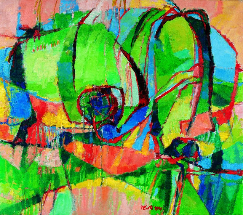 Mi sembra che ci si trovi di fronte ad una scomposizione/gioco di scomposizione del/sul paesaggio condotto a partire da un asse/centro quasi centrale: l’asse che attraversa/corre lungo quel fiore/sfera collocato al centro leggermente spostato a sinistra. Da quell’asse si propagano, come estratte da una serie di movimenti concentrici aperti (non chiusi) tante finestre, che altro non sembrano che altrettante quinte di paesaggi – o di loro frammenti – incastrati l’uno nell’altro. Pezzo difficile ma estremamente affascinante. Potrebbe andare in mostra.Æ TAV. XIII