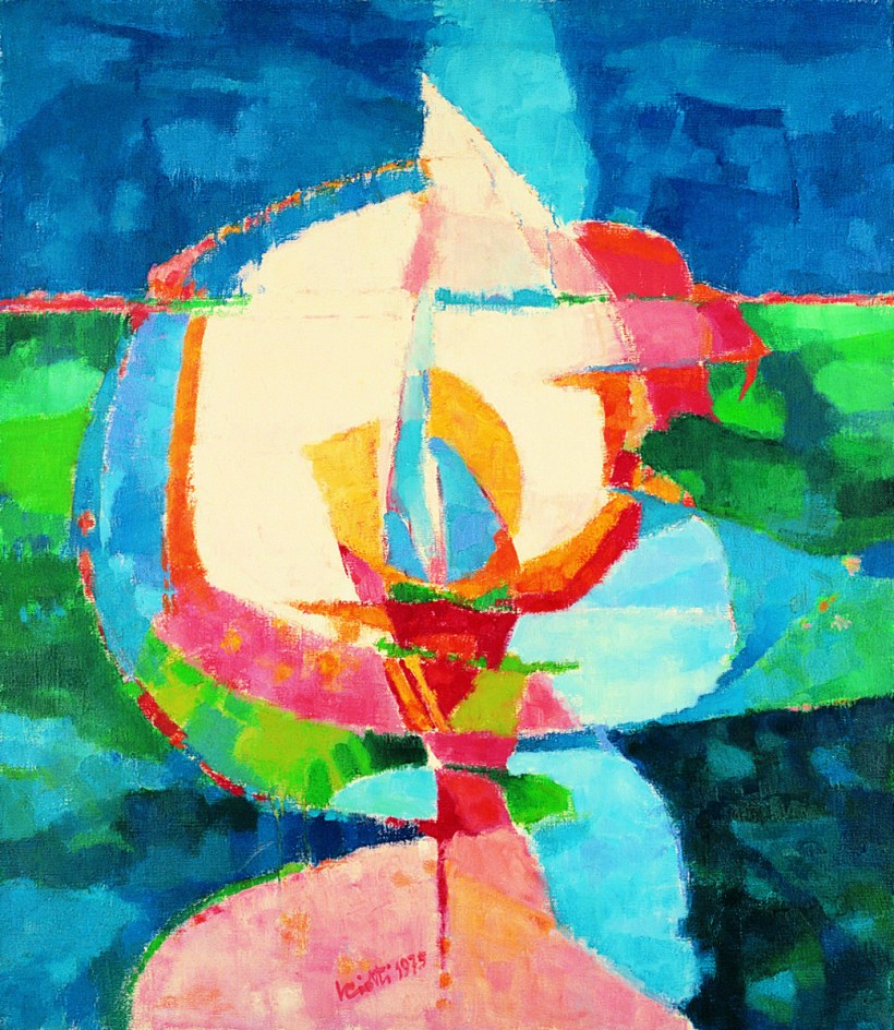 È sufficientemente leggibile il soggetto, nel campo centrale, di una vela, dentro la quale potrebbero trovarsi inscritte delle altre, che rivela una assolutamente personale e intelligente/ironica rilettura della lezione di Paulucci. Indispensabile per la mostra.