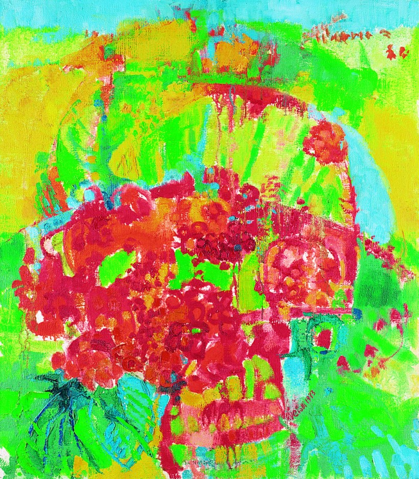 È un pezzo assolutamente magico, un paesaggio stravolto e sconvolto dalla presenza incombente, predominante, di una palla/sfera infuocata, tramata da linee e da macchie, che ne sposta ai confini le tracce (alberi, curve di colline, ecc.).