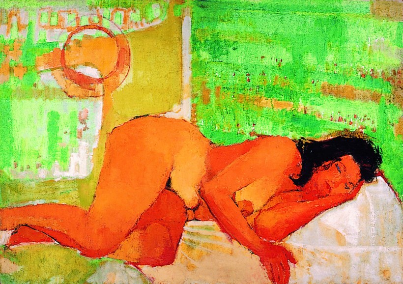 La figura risulta ricoperta/ ritentata più volte e forse non accettata. Potrebbe essere stato considerato da Valeria stessa non finito. Figura distesa che cercava ascendenze matissiane?