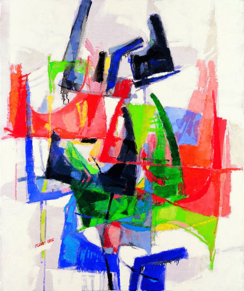 |Oli•153| «Composizione n 2» 1992, firmato olio su tela, 75 x 90 cm|Acq•bozzetti•oli 03| Bozzetto «Composizione n 1» e «Composizione n 2» circa 1992 acquarello su carta, 12 x 16 cm|Acq•bozzetti•oli 02| Bozzetto «Composizione n 1» e «Composizione n 2» circa 1992 acquarello su carta, 12 x 16 cm