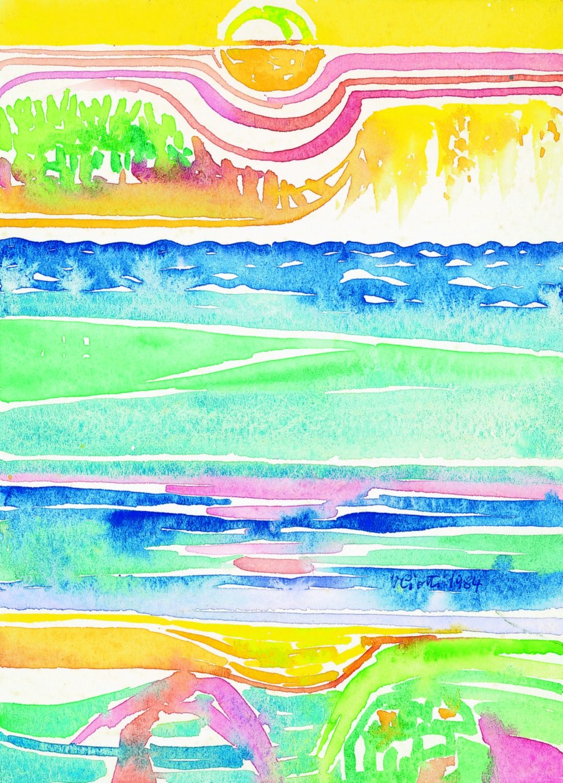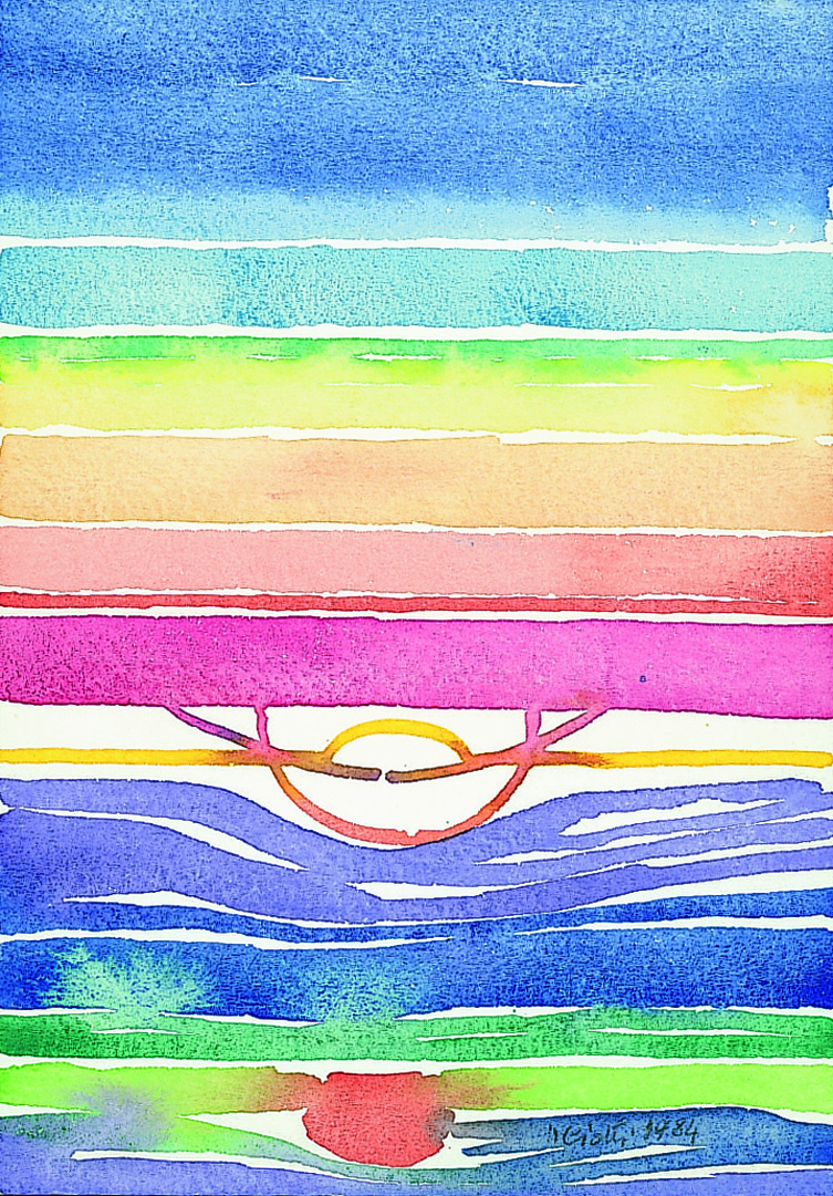 |Acq•acqua-orizzonti 16| Orizzonti 1984, firmato acquarello su carta, 13 x 18 cm