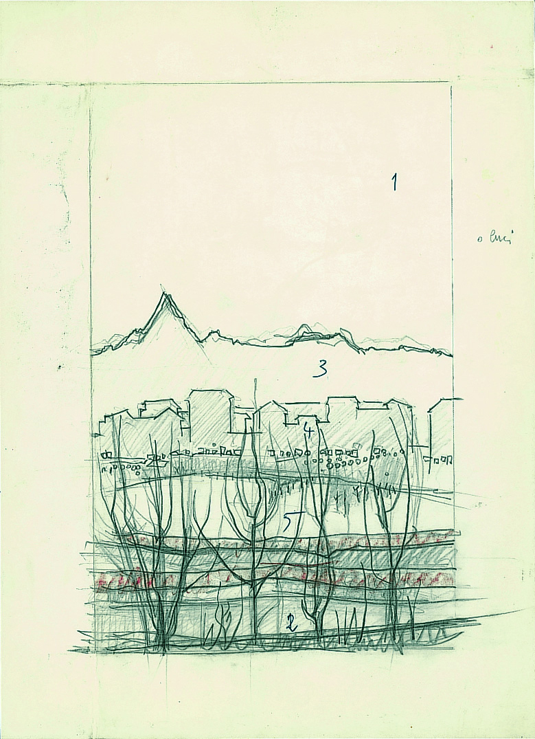 |Dis•paesaggi 05| «A sera» circa 1968 matita su carta, 16 x 25 cm