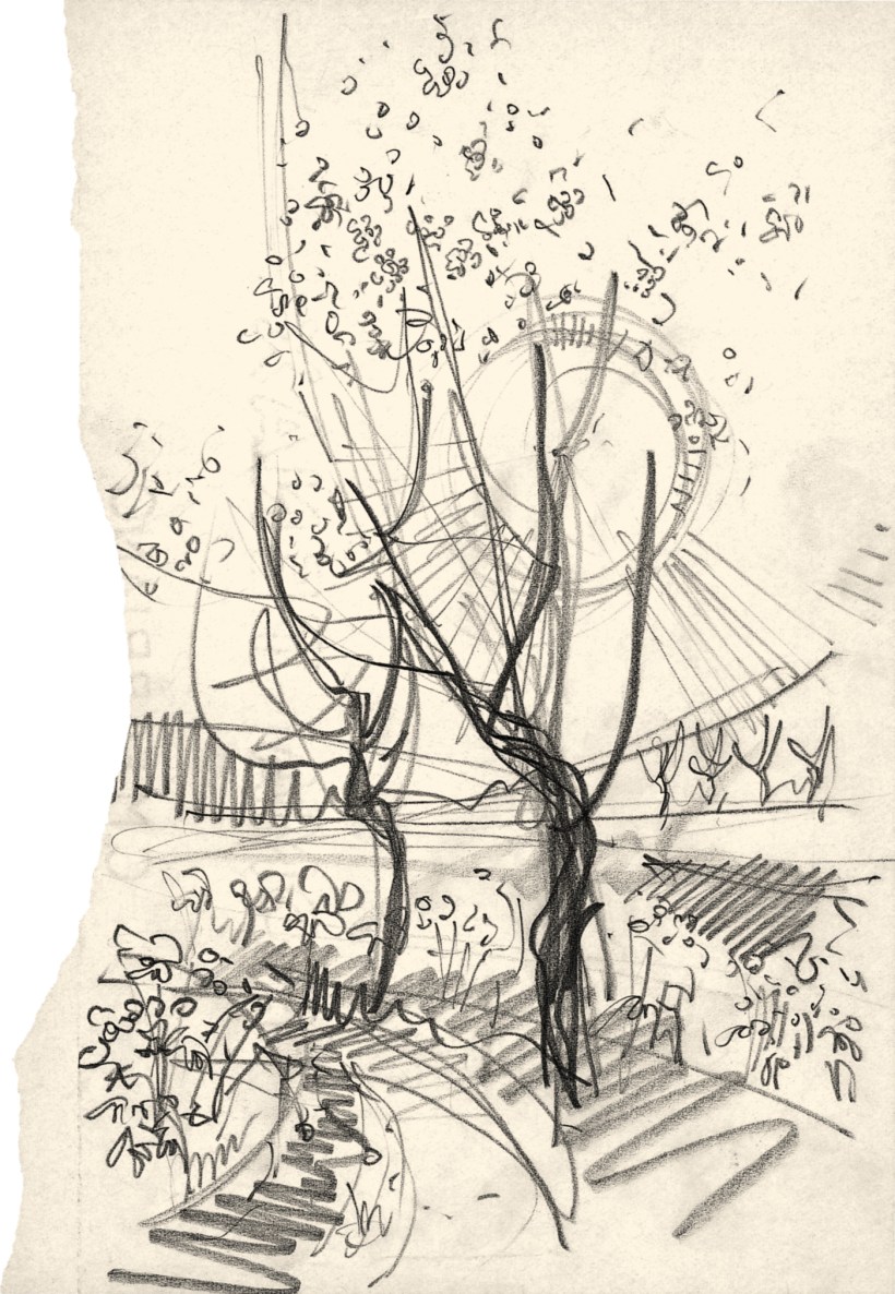 |Dis•alberi 18| Sole tra gli alberi circa 1971 matita su carta, 13,5 x 22 cm